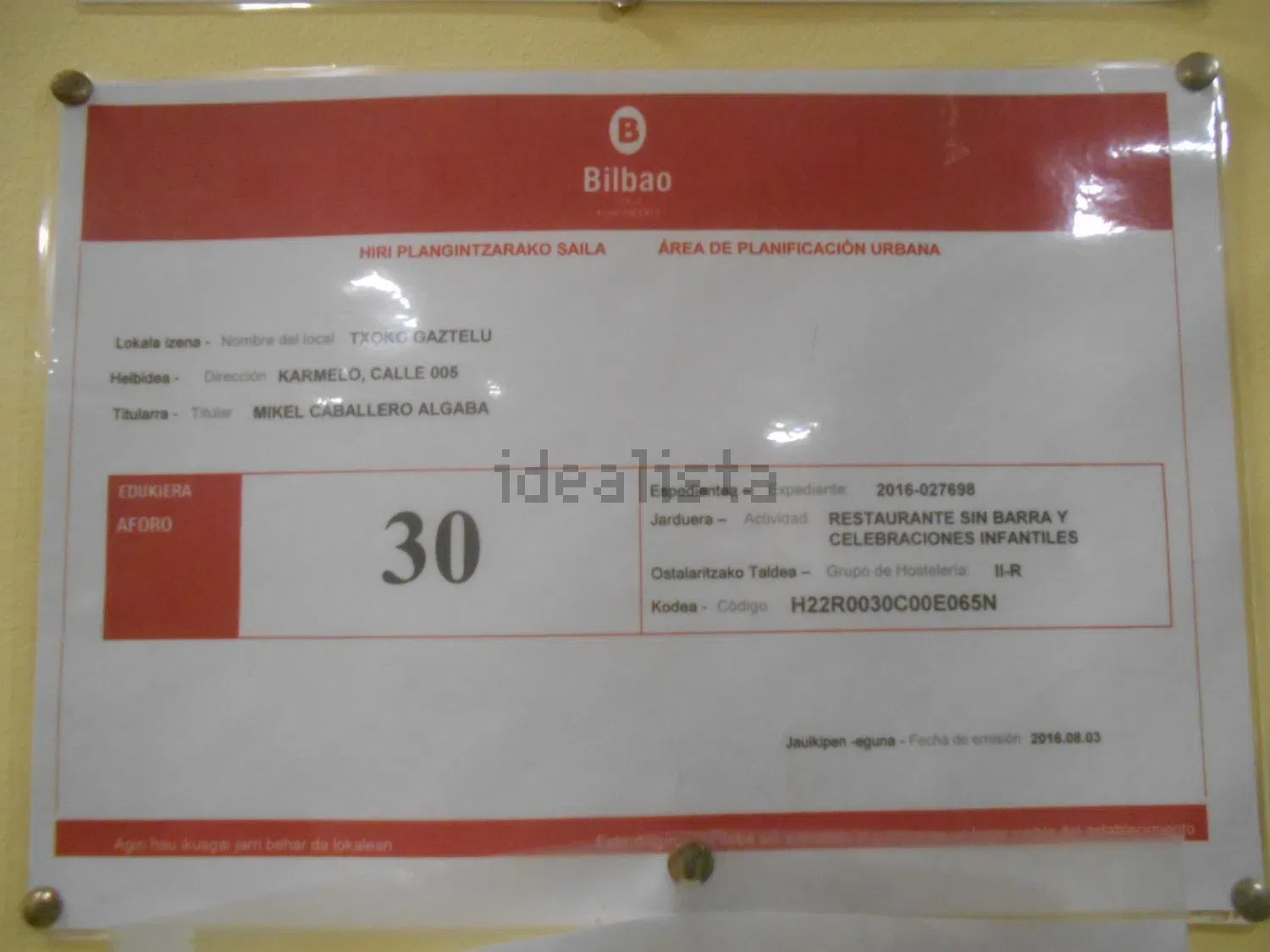 santutxu centro, en la calle karmelo (galerías), se vende negocio en plena actividad; local a pie de calle totalmente reformado nuevo, destinado a txoko para celebraciones de todo tipo; situado en zona peatonal, de fácil acceso, muy cerca de la parada del metro; como inversión, indicar que el txoko actualmente se encuentra arrendado: cuenta con un alto índice de ocupación y ofrece una buena rentabilidad; el local se encuentra distribuido en una gran estancia destinada a comedor, cocina equipada, sala de juegos, almacén, antesala con lavabo y dos baños adaptados; fachada exterior a terraza cubierta; otra característica importante a resaltar es que el txoko está completamente insonorizado y que nunca ha habido queja alguna de los vecinos por ruidos.